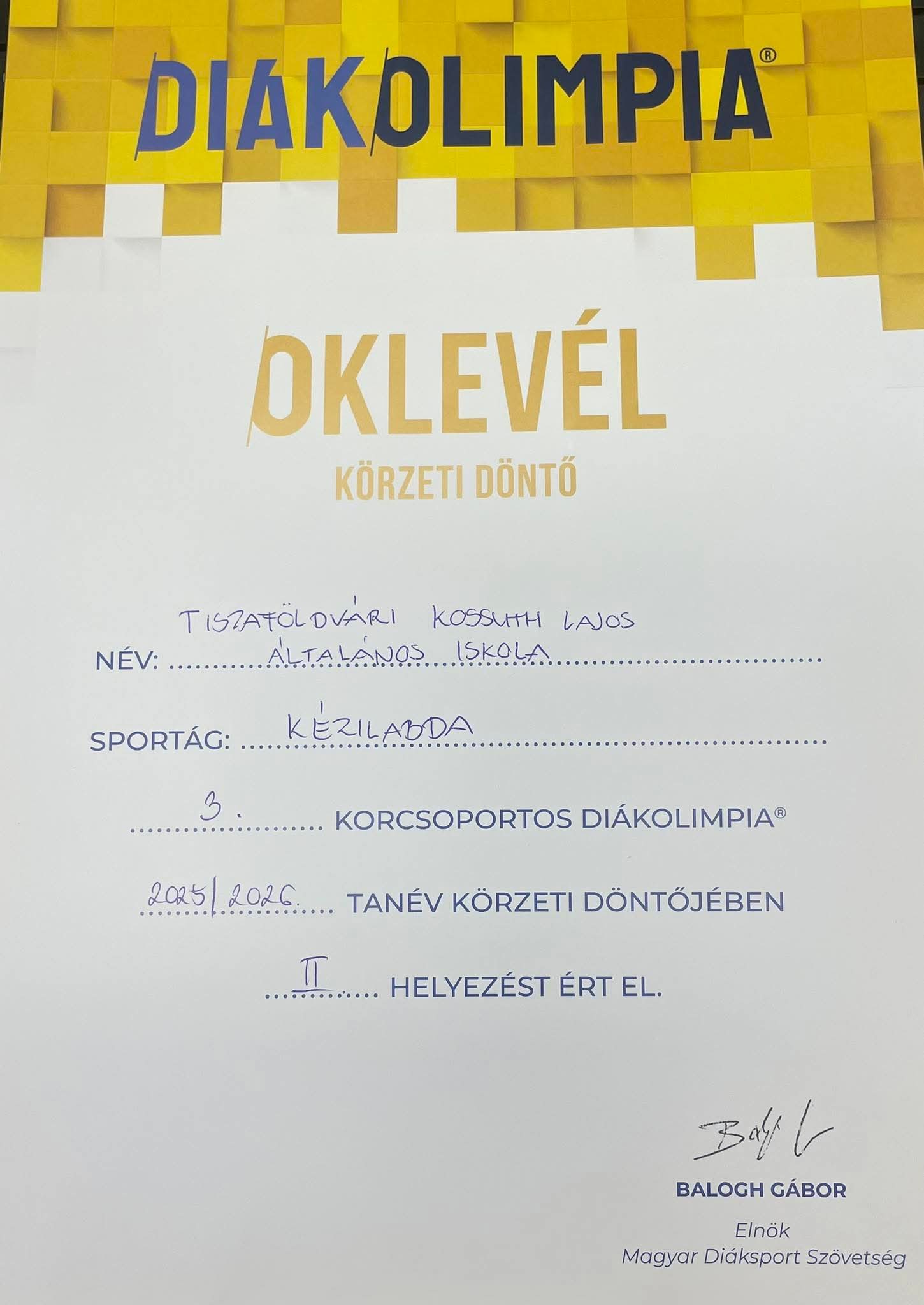 ​III. korcsoportos lány kézilabda Diákolimpia: II. helyezés (Ezüstérem)